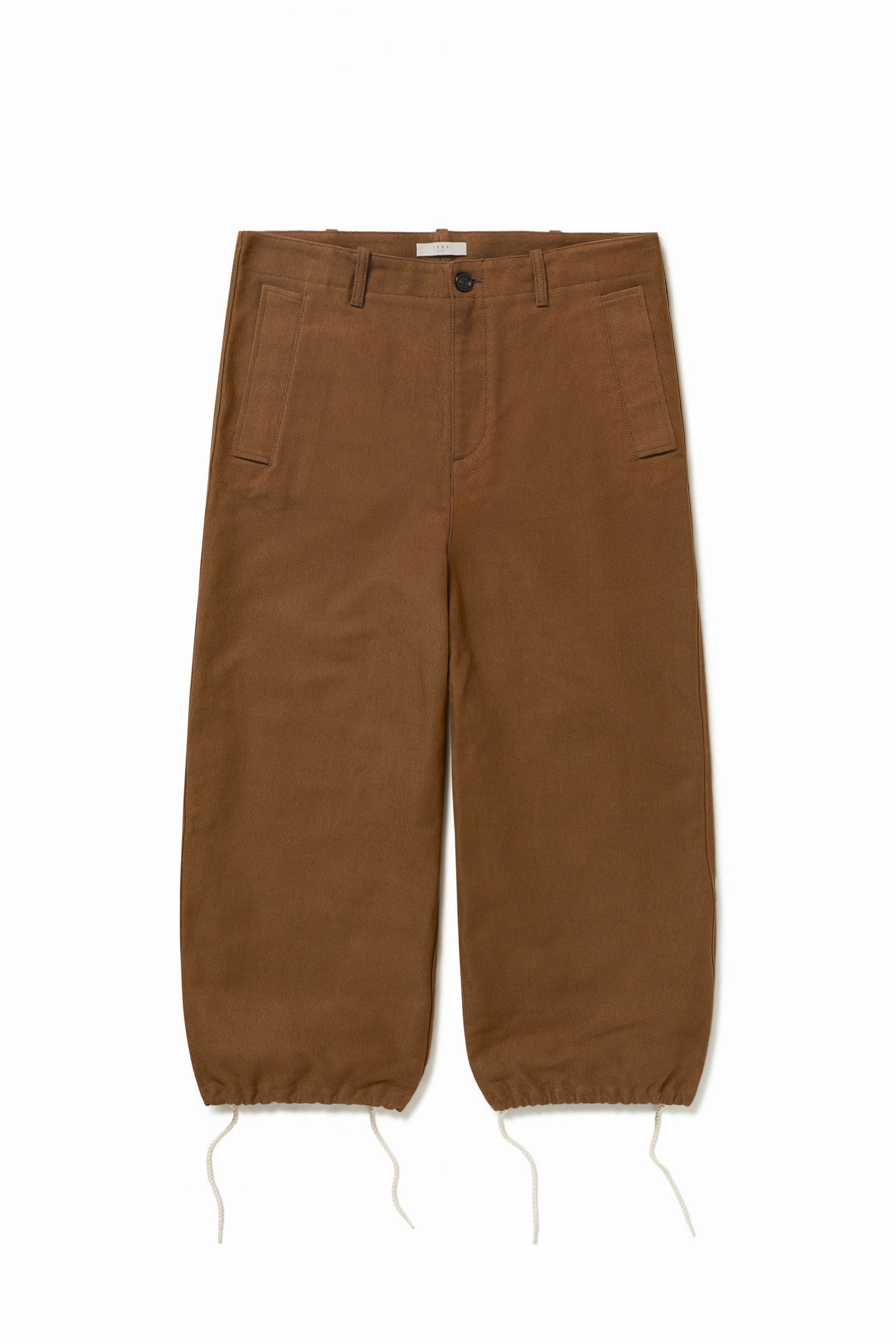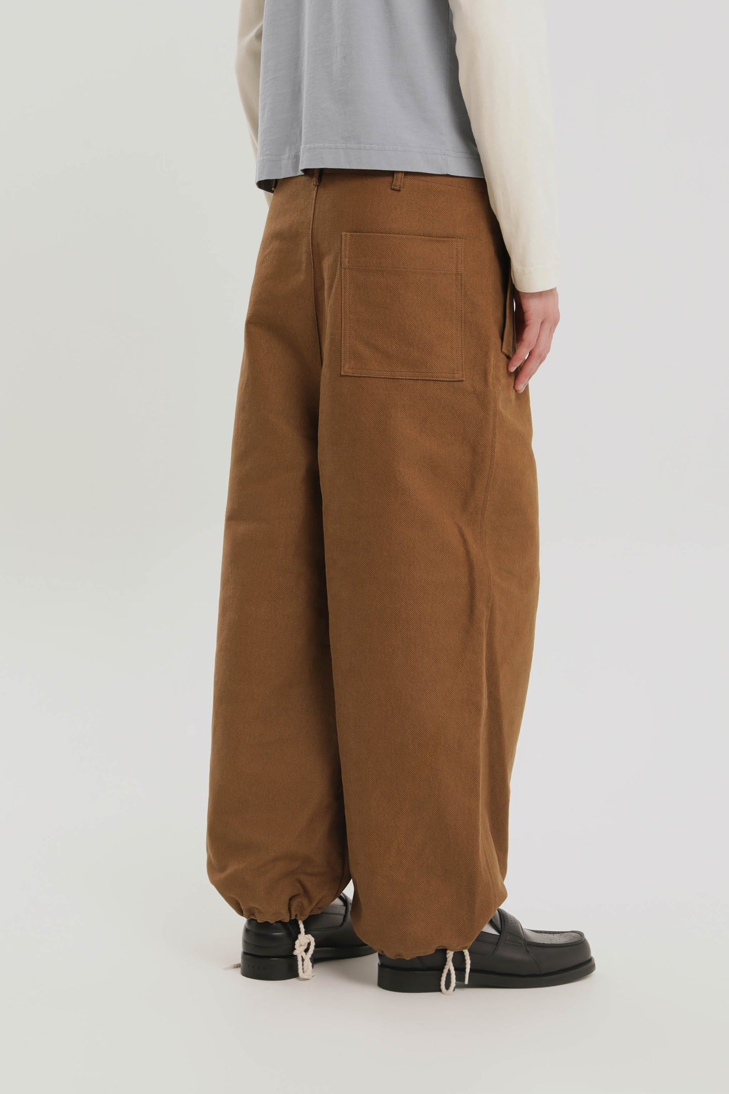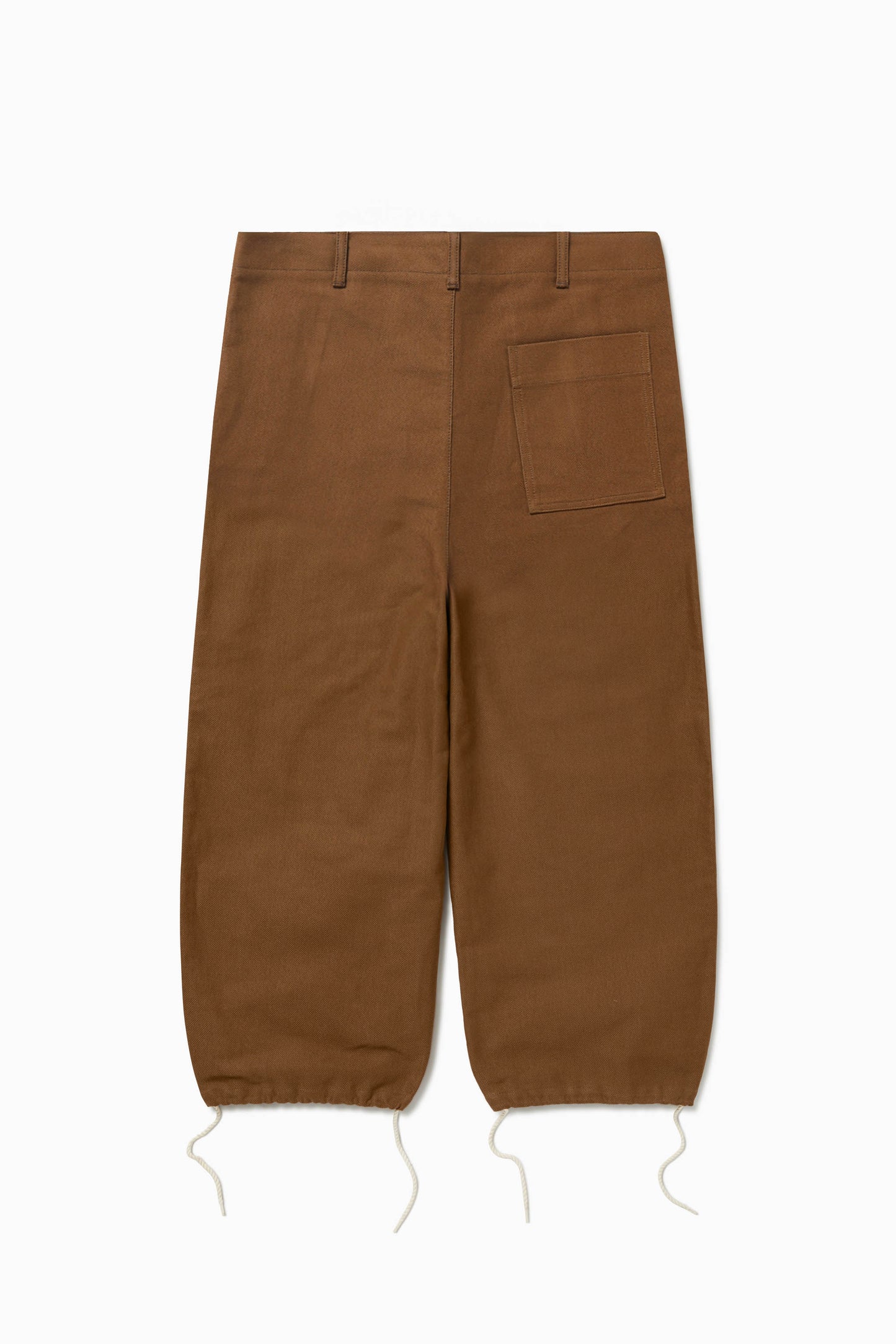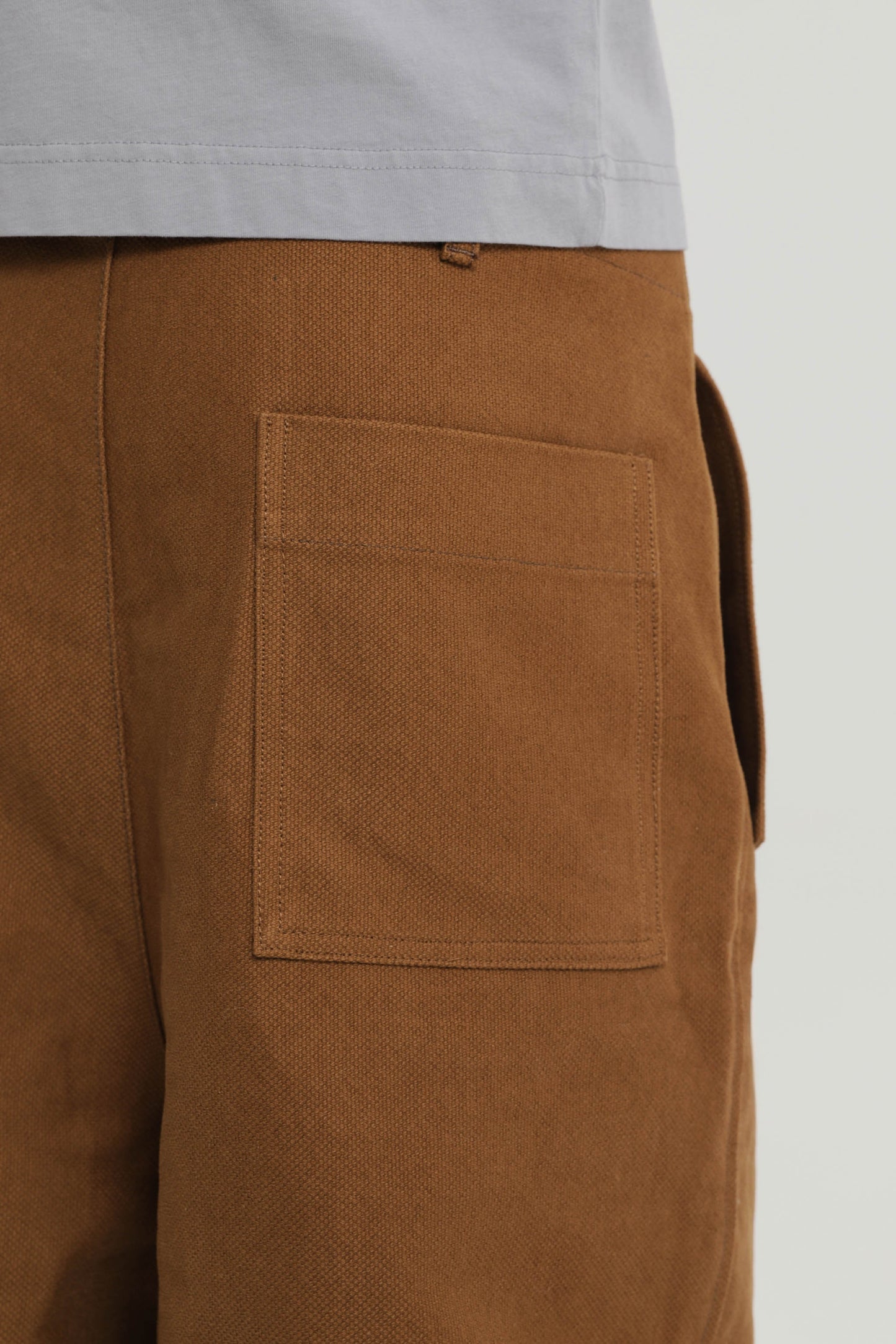Workwear cotton pant featuring belt loops, zip and hook fastening, side and rear pockets and elasticated hem.