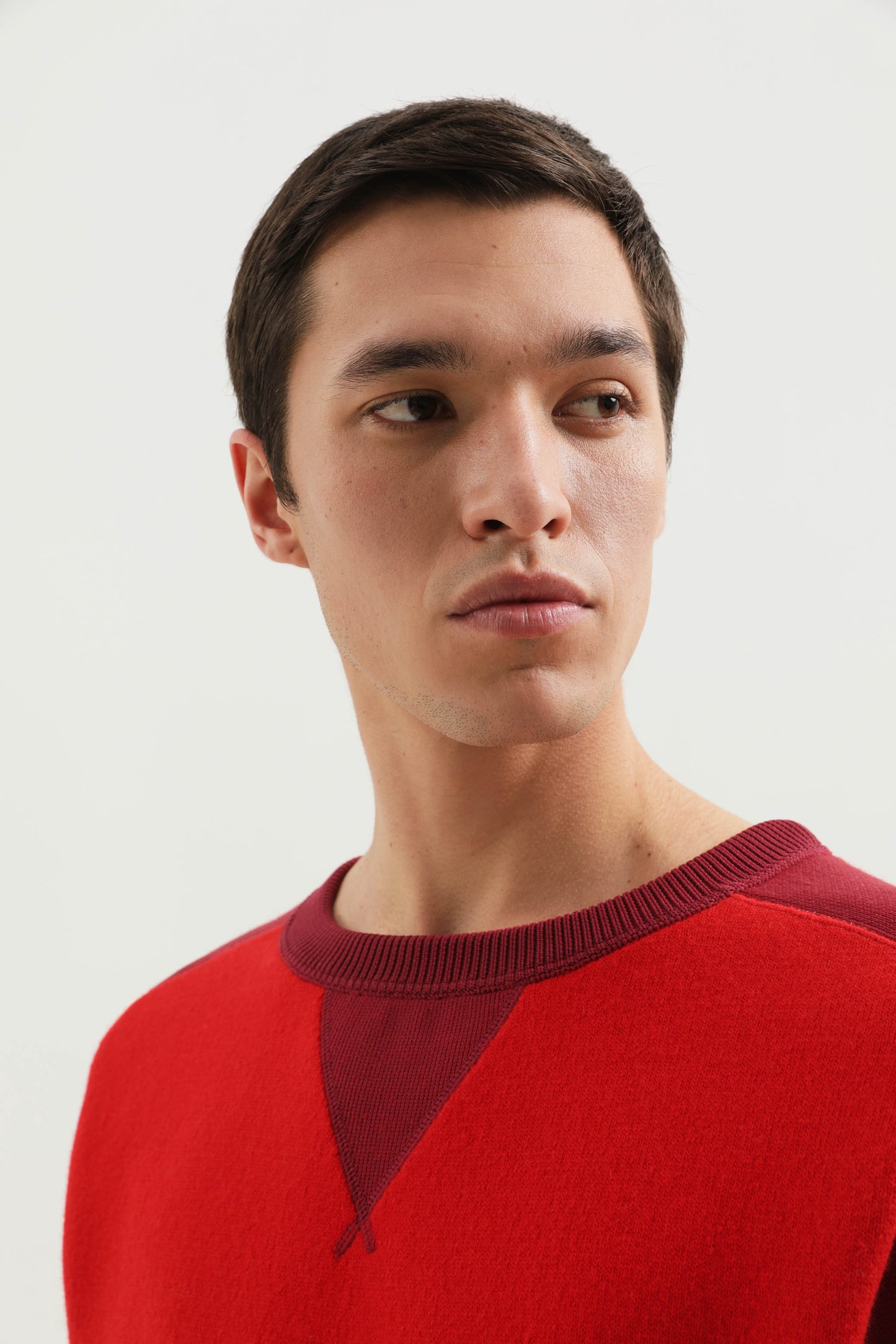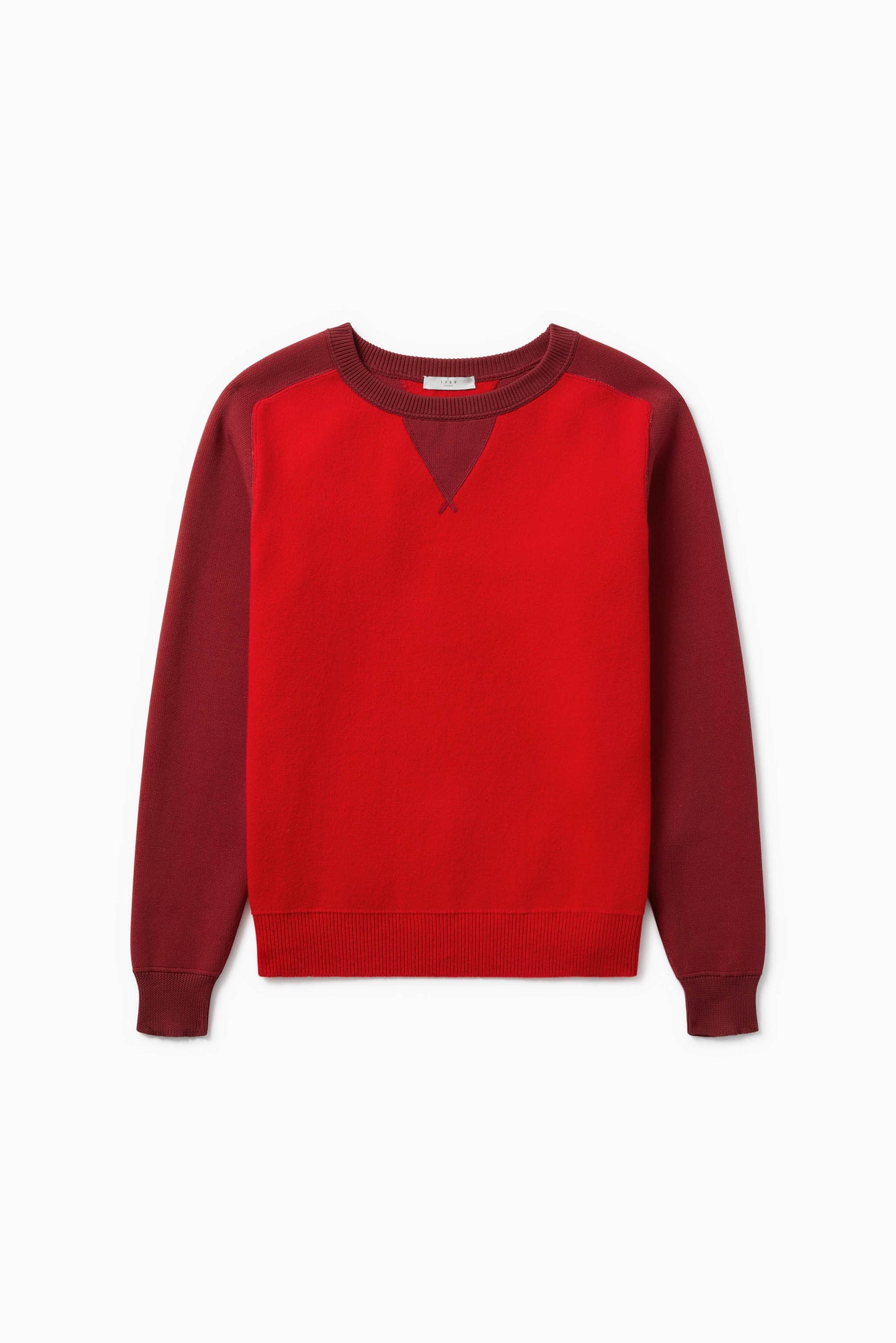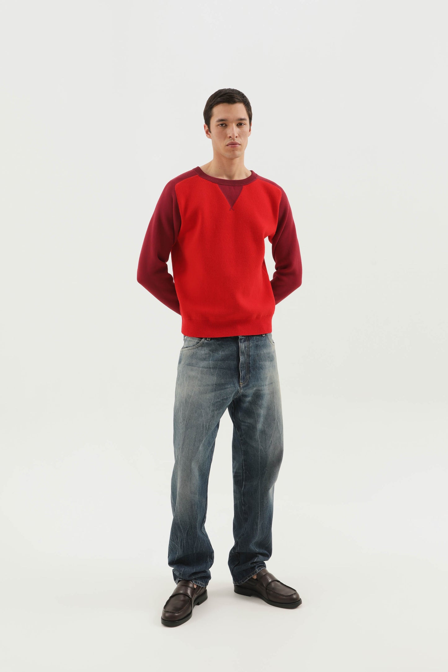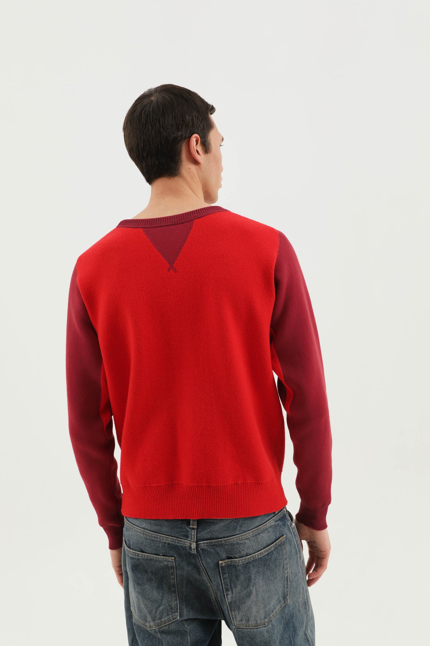 Crewneck pullover featuring bicolor pattern, long sleeves, ribbed cuffs and hem.